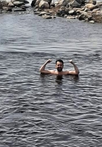 Le 20 juin 2021, jour de baignade, moi et mon partner avons été à «la plage» (Oui… c’est le type de plage qui mérite des guillemets. Très peu commun mais très agréable). Je l’ai regardé et je lui ai dit : «T’es pas game». Il ne se doutait probablement pas que mon choix était déjà fait alors il m’a répondu sur un ton de défi en me regardant directement dans les yeux, comme si je lui avais demandé si il était prêt à aller à la guerre : «Tu ne me le diras pas deux fois !» Il a enlevé ses vêtements et a avancé tranquillement dans l’eau. Je lui ai lancé : «Bin non !! Faut que tu entre complètement dans l’eau ! S’est une immersion !» et je l’ai fait. J’ai plongé complètement dans cette eau glaciale. Je me disais : WAW… Je me baigne dans l’eau des glaciers… Il n’y a pas d’eau plus pure que ça. J’ai ouvert les yeux sous l’eau sans ressentir aucun inconfort.